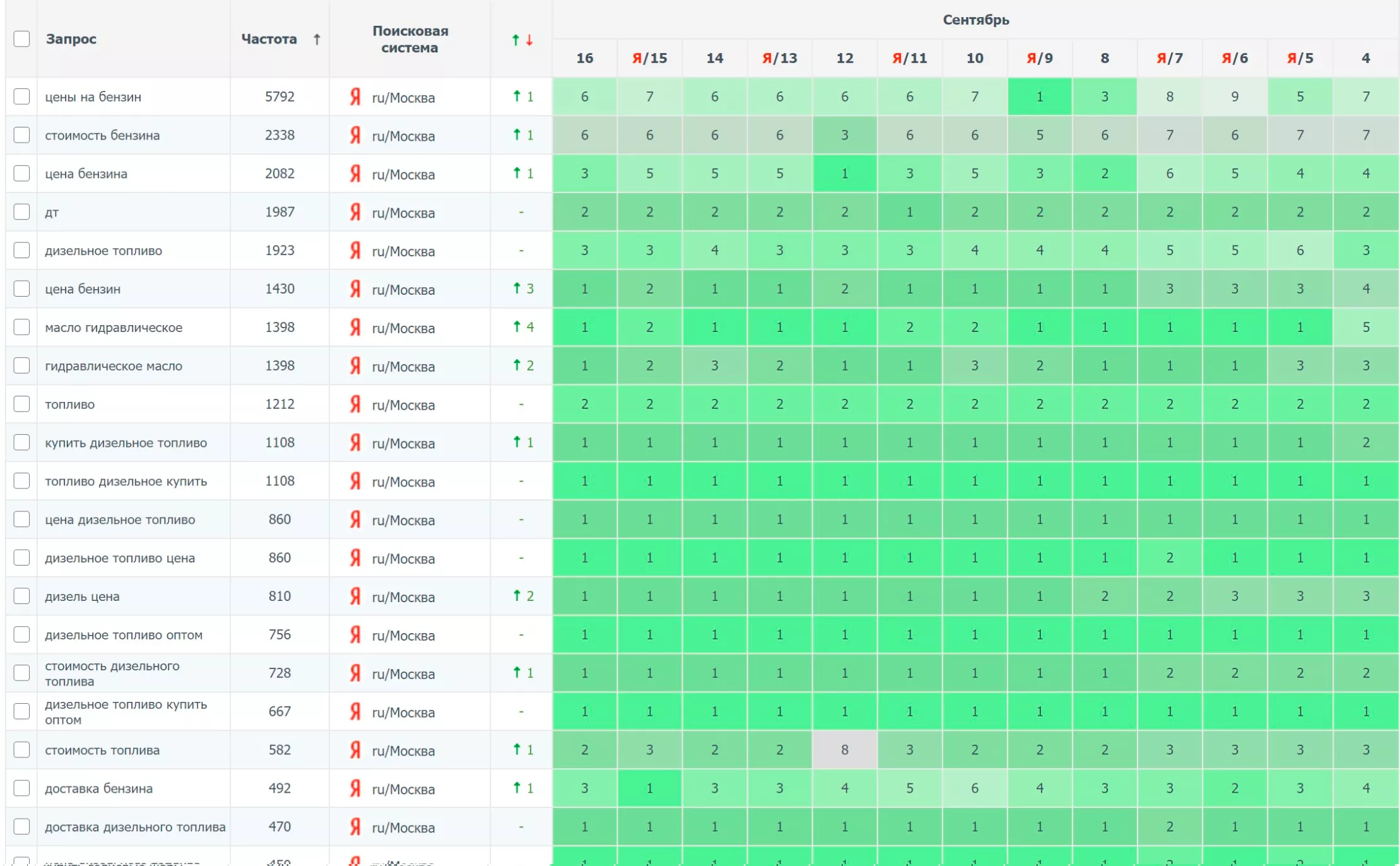 В случае продвижения по позициям, специалист собирает и согласовывает с заказчиком семантическое ядро, которое обычно состоит из 100-500 высокочастотных запросов, и постепенно выводит их в ТОП поисковой выдачи.